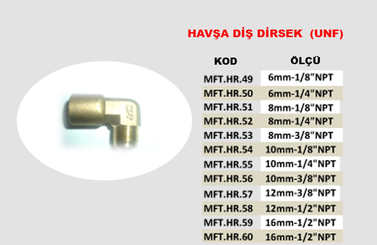 HAVŞA DİŞ DİRSEK (UNF)